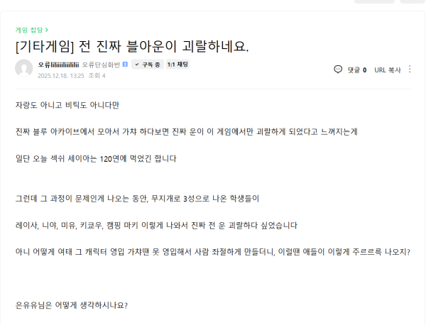 어떻게든 말 걸고 싶어서 이젠 지 가챠 얘기까지 징징대면서 어떻게 생각하냐 이지랄