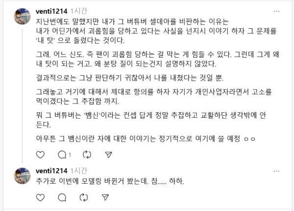 가만 보면 현실에서 말 한마디 못 붙이고 전부 인터넷에서 구독자 신분으로 1년 전부터 갖은 아부를 다 떨다가