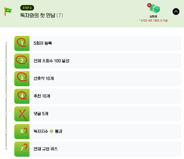 저 스탭을 다 돌고 5만원 주는게 아니라 저 중 4개 까지 클리어 가능한거라서