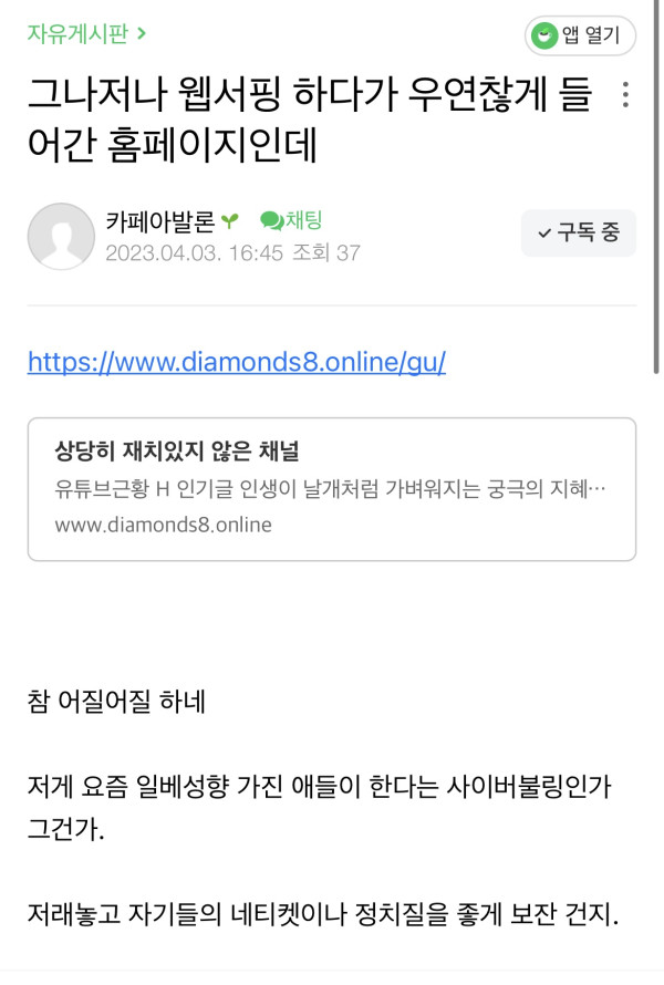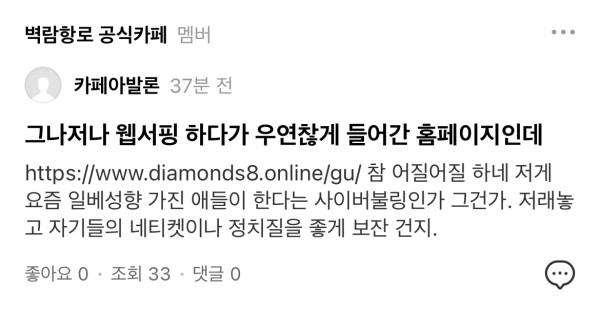 아에 카페 여기저기 돌면서 앞 뒤 다 자르고 일베로 몰더라?