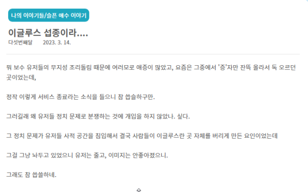 근황글 (23.03.14) 이 새낀 이글루스 없어져서 제일 좋으면서 애수는 니미