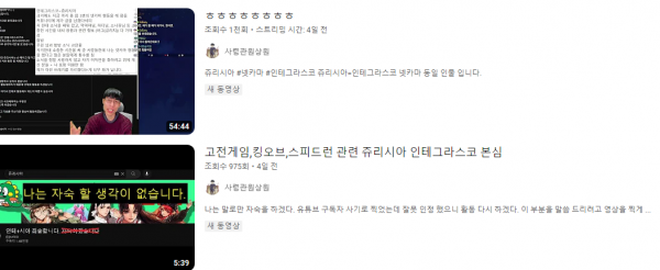 유튜브 근황에 보면 [쥬리시아] 라고 달린게 있어요.