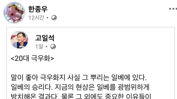 그저 머리속에서는 종북좌익질 말고 뱉을 수 있는게 있기는 한가? 뇌가 굳었으니 이제는 아무것도 생각 못하겠지. 에휴 병신 ㅉㅉ. 더군다나 지가 전시 박제하는거 보면 다 지 욕 하는 내용들이네. 이분법부터 시작해서 한쪽으로 치우쳐진 씹새끼는 다 니 이야기잖아.