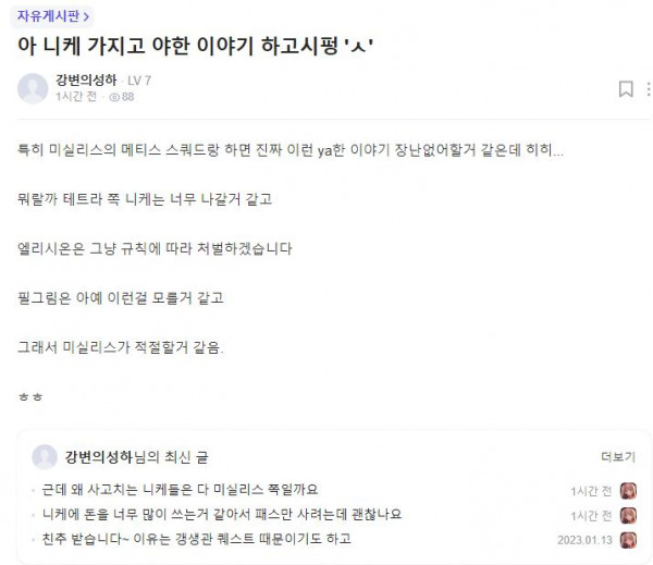 근황글 (23.01.15) 아 니케 가지고 야한 이야기 하고시펑 'ㅅ'