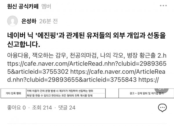 > 자기 까댄 유저들 모아다가 신고 때림