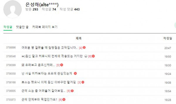 자신에게 불리한 글과, 거기에 자기에게 악평 단 사람들 다 체크해서 싹 날려버림.