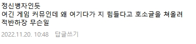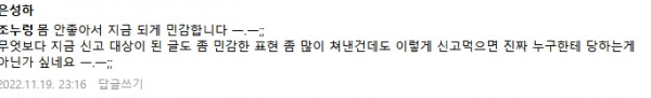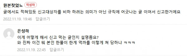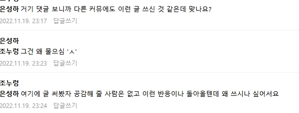 ** >> 22년 11월 20일 14:00 링크 내용에 은성하님 성질 못 버리고 또 키배질 시작