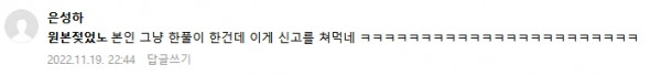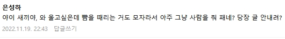 근황글 (22.11.19) '은성하'님 몸 아프신게 면죄부신가요? ㅋㅋㅋ
