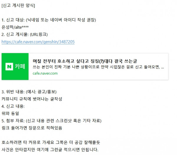 > 이걸 왜 신고 먹냐고 그러는데, 오히려 지가 친목으로 신고하는건 근거가 겨우 '다른 사람의 조언 코멘트' 뿐이다.