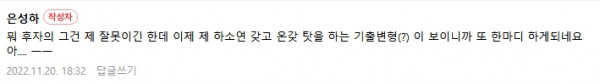근황글 (22.11.20) '은성하'님 삔또 상하셨어요?