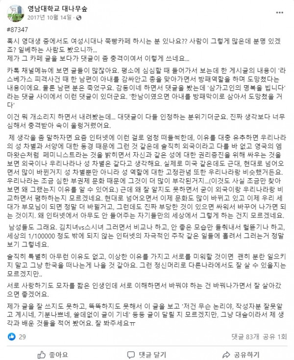 글 내용은 뭐 내 알빠 아니다. 근데 이거 하나만 말하고싶다.