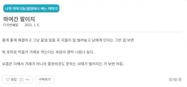 맨날 같은 글 쓰면 뭐해. 읽지도 않는데.