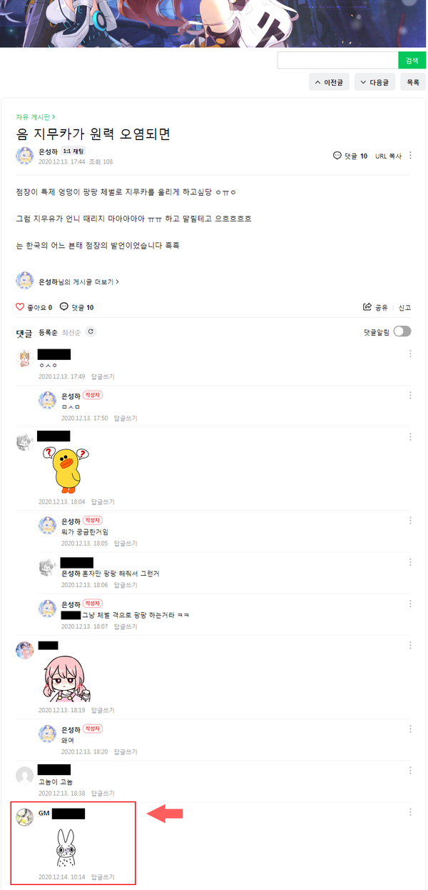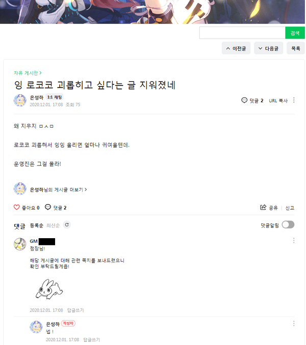 - 관리자가 경고스럽게 이모티콘 날린다던가 (아마 은성하는 저거 이해 못하고 관리자가 자기 봤다고 좋아할 것)
