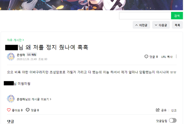 - 정지 좀 줬다고 앙탈 부리고 자빠졌음