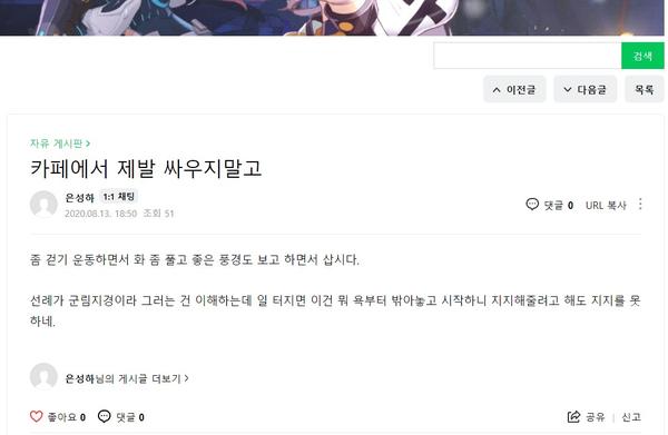 - 카페에서 제발 싸우지말고... ㅋㅋㅋㅋ 야 혹시 2020년의 너 글 안봤냐?