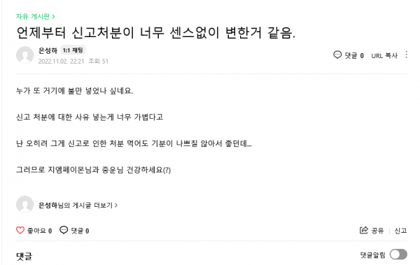 하긴. 은성하씨는 자기를 비난하면 관리자도 적으로 보고 알아서 탈퇴하시니까!