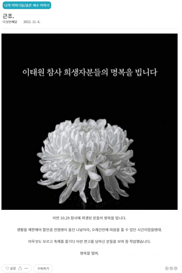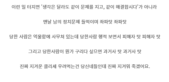 그런 주제에 이번 사건에 대해 애도합니다. 이런 소리하는게 제일 역겨운겁니다.