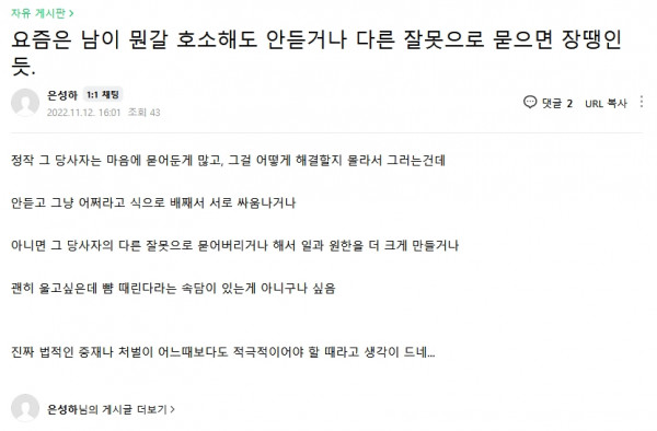 근황글 (22.11.12) 은성하님은 사회생활 어떻게 하고 사실지 진짜 걱정되네요.