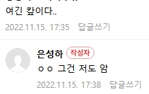 - 다음글(22.11.15) '은성하'님은 장소를 가릴 줄 몰라요? 22.11.15
