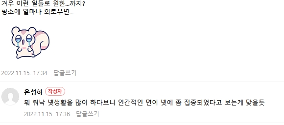 근황글 (22.11.15) '은성하'님은 글쟁이를 자청하면서 글을 못 읽는거 같은데