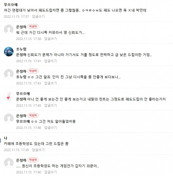 - 이 새끼 제일 역겨운거. 이 게임 연령층이 어느정돈지 지 좆대로 가늠하고 있다는 거.