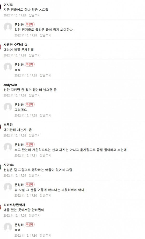 - 다음글(22.11.15) '은성하'님은 글쟁이를 자청하면서 글을 못 읽는거 같은데 22.11.15