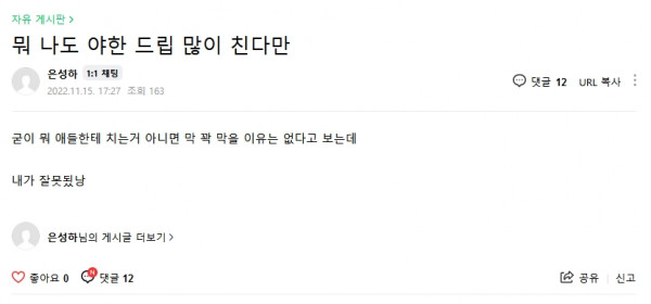 근황글 (22.11.15) '은성하'님은 성적발언을 어디서 해야하는지 전혀 모르는거 같다.