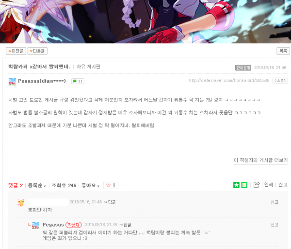 업데이트완료 (옛날) 우리 카페좆발론님 이미 전에 벽람항로 카페 탈퇴 당하고 욕 씨게 박으셨네
