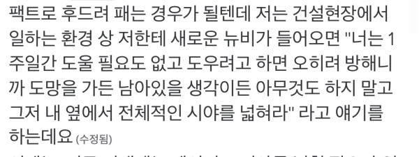 1. 막노동이라도 해보던가. 노동 한번 재대로 한 것도 없는 새끼가 아가리 좆 같이 터네. “ 사수로서 여러모로 일하고 싶은 분이군요.” 취업이나 되고 말하라고