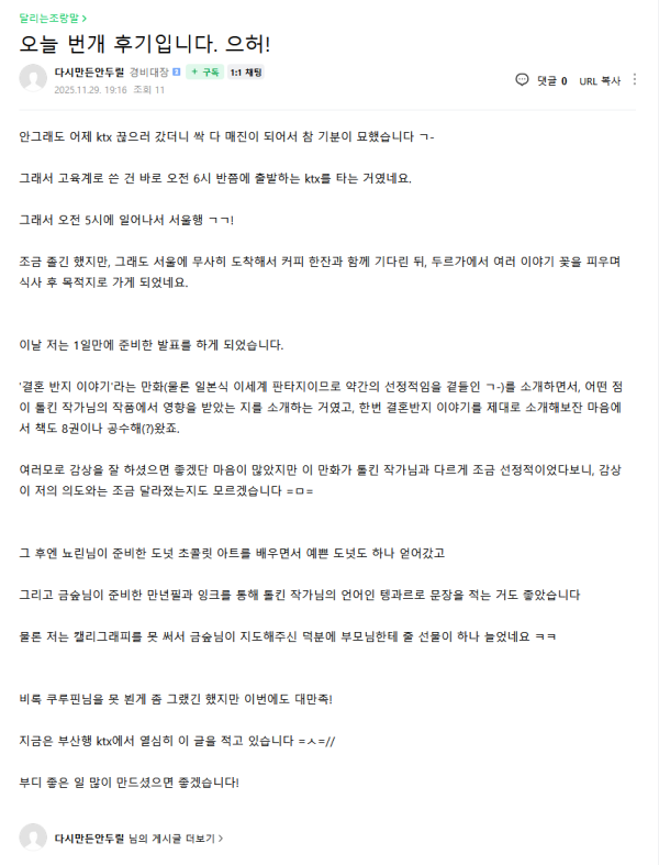 근황글 (251129) 또 좆목질 도킹하고 오셨구나