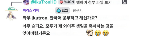 - 영문 디스코드방에서 누가 한국어로 된 게임 캡쳐 올려서 반응 하는 내용