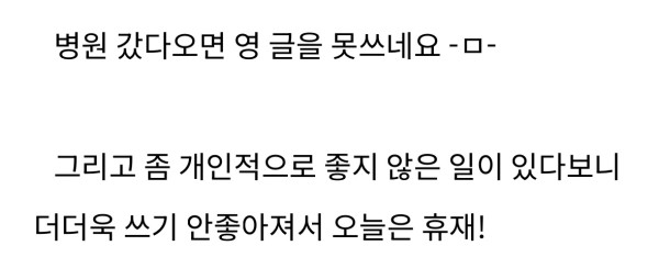 ‘병원 갔다오면 영 글을 못쓰네요