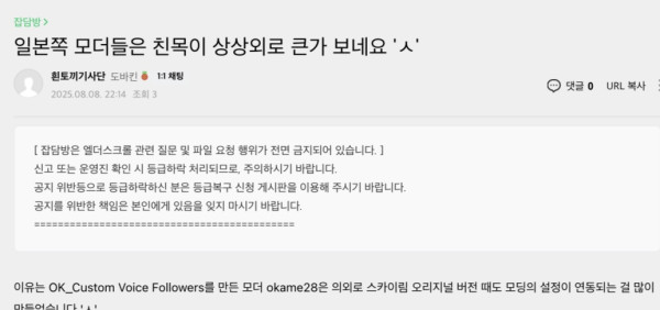 그건 그거고, 거기서만 쓰면 되는거 다른데 가서도 글 쳐 올리는 건 여전하네. 그리고 뭐 별 것도 아닌 이야기 그거 무슨 큰 뉴스인 거 마냥 여기저기 쳐 올리는 것도 존나 웃기고