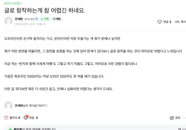 근황글 (250815) 글로 창작하는게 참 어렵긴 하네요