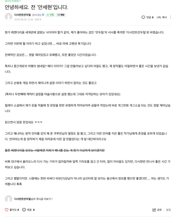 작성자 한종우대가리뚝스딱스 댓글 2건 조회 1,461회 작성일 25-08-18 12:54본문