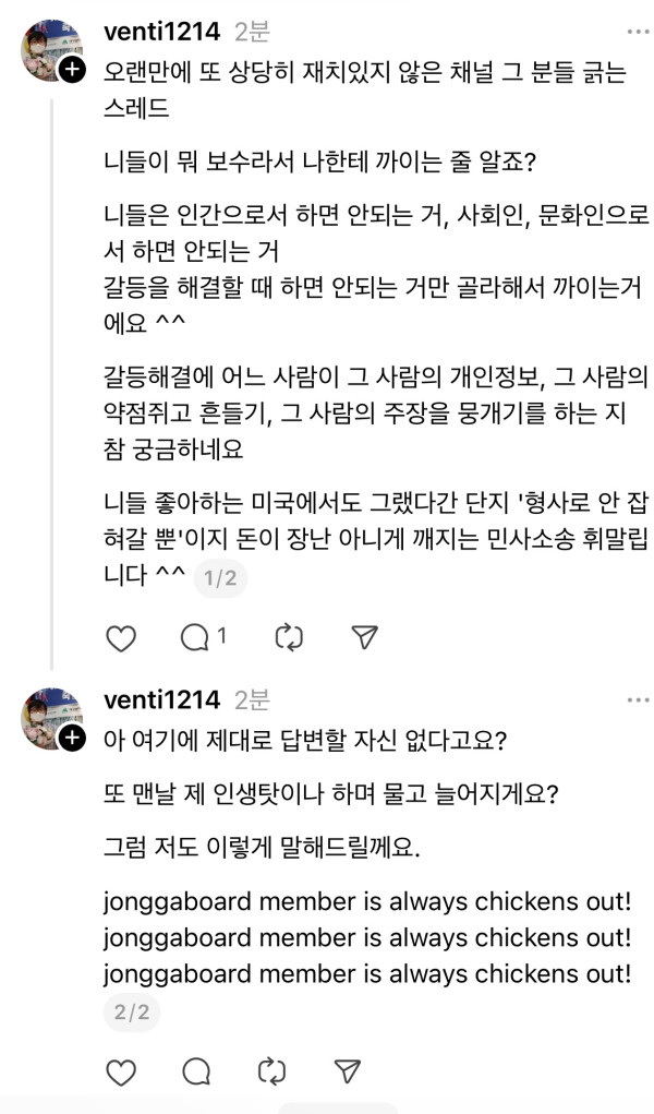 근황글 (250818) 소송 걸 돈 없는 백수새끼가 말은 많아
