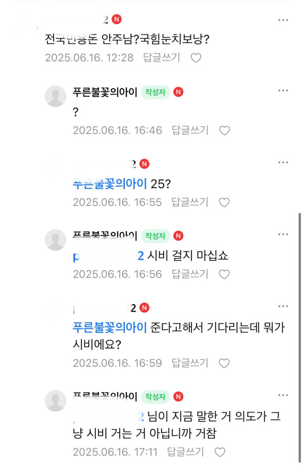 지가 정치글 싸지르니 남도 거기에 코멘트 단건데 왜 지랄함?