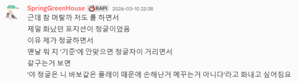 - 이전글(260313) 너 꼭 오프라인에서도 니 화 막 배출하고 지랄해라? 26.03.13