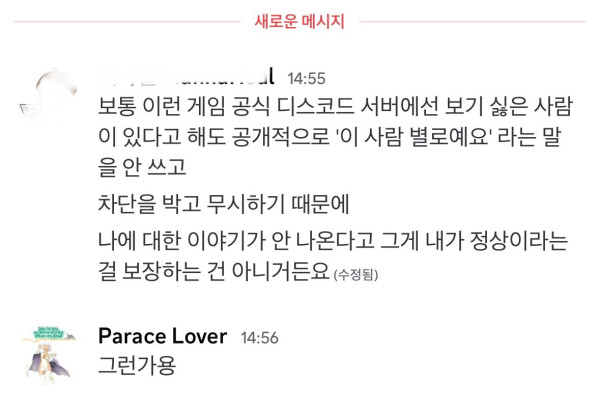 “ 적절한 거 아니면 저도 '그냥 나랑 이지투온 디코를 이간 질하려는 분탕종자'로 생각하고 있습니다.”