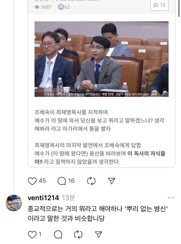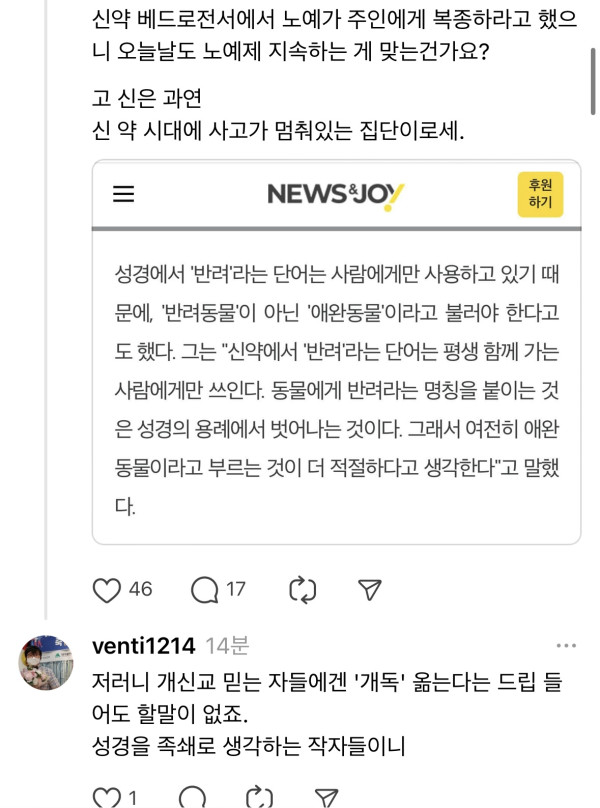 - 교회에 나가지도 않는 주제에 종교 있는 척 야랄하지 마세요. 게임부터 시작해 모든걸 안하는 분탕 새끼야