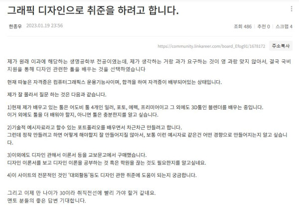 근황글 (230119) 그래픽 디자인으로 취준을 하려고 합니다.