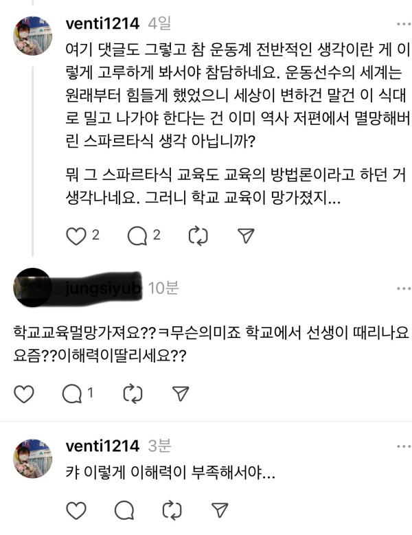 ㅇㅇㅇ 작성일학교 다닐때 체육시간만 되면 나무 밑에서 놀던 놈이 말이 많네