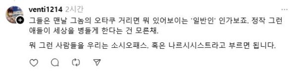 "그들은 맨날 그놈의 오타쿠 거리면 뭐 있어보이는 '일반인' 인가보죠.