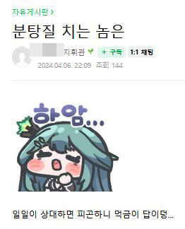 근황글 (240406) 분탕질 치는 놈은