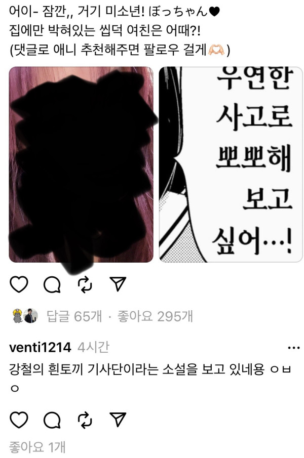 근황글 (240418) “거기 미소년!! 집에만 박혀있는 씹덕여친은 어때?“