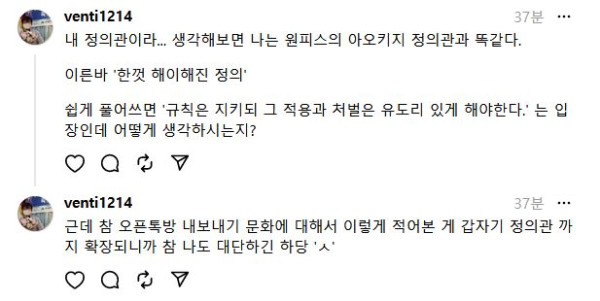 → 와 시발... 일단 종가놈이 '정의'를 운운하는게 존나 웃긴데요