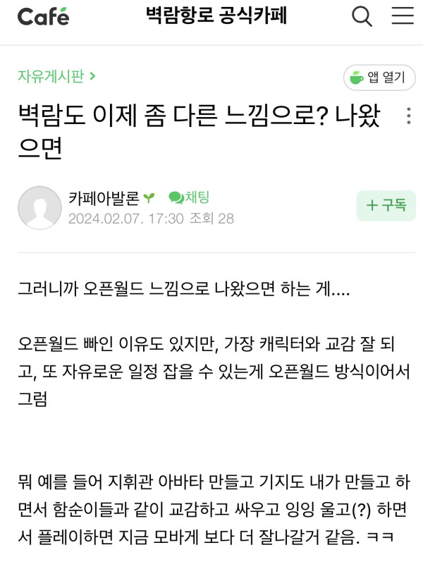 근황글 (240207) 오픈월드 ㅋㅋㅋㅋ
