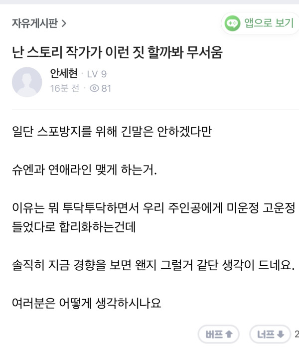 ㅇㅇㅇ 작성일저러고서 비추안박히길 바라는데 어림도 없는 소리지