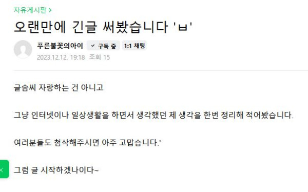 근황글 (231212) 글솜씨 자랑하는건 아니고요(자뻑)