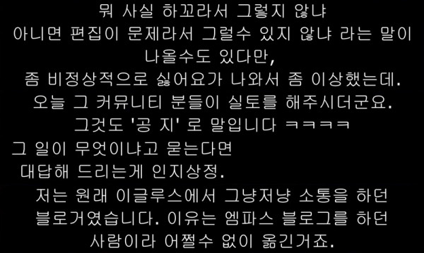 내용에서 '이글루스'에 대한 내용은 존나 개노잼에 영상 대부분 자치해서 뺐습니다.